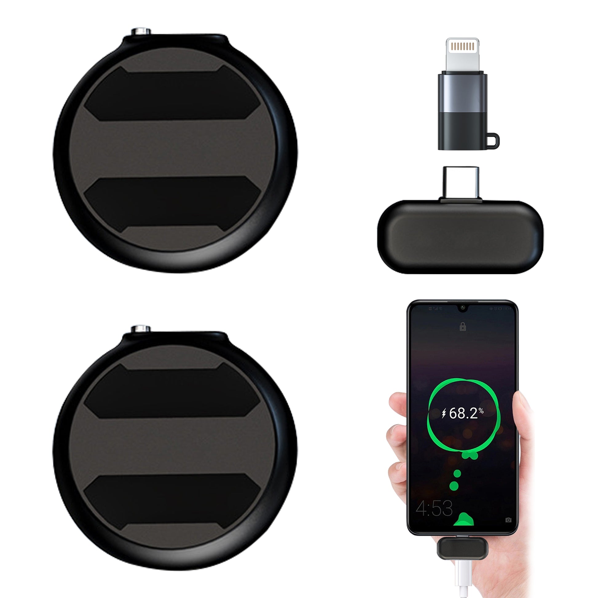 2 Pack Round Wireless Microphone for All Models of Mobile Phones,Noise Reduction Lapel Wireless Phone Mics for Recording and Video,Clip on Mic
